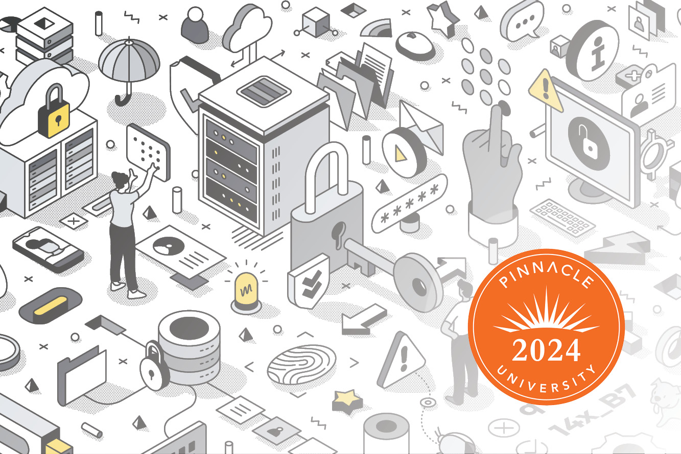 illustration of various fraud-related graphics with the Pinnacle University logo at the bottom.